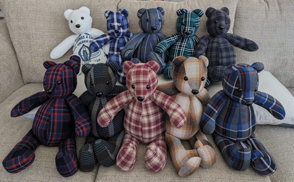 Each bear is lovingly made to keep your loved one’s fabric alive, creating a comforting symbol of cherished memories.